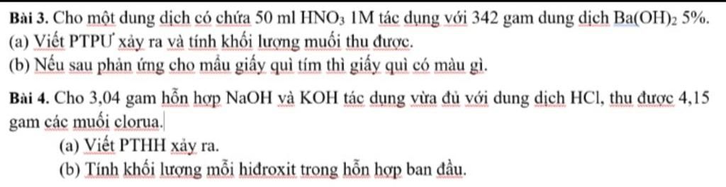 b) Nếu sau phản ứng cho giấy quỳ tím vào thì quỳ tím sẽ hóa màu xanh vì Ba(OH)2 dư sau phản ứng ( do tính chất hóa học của dung dịch Bazơ
