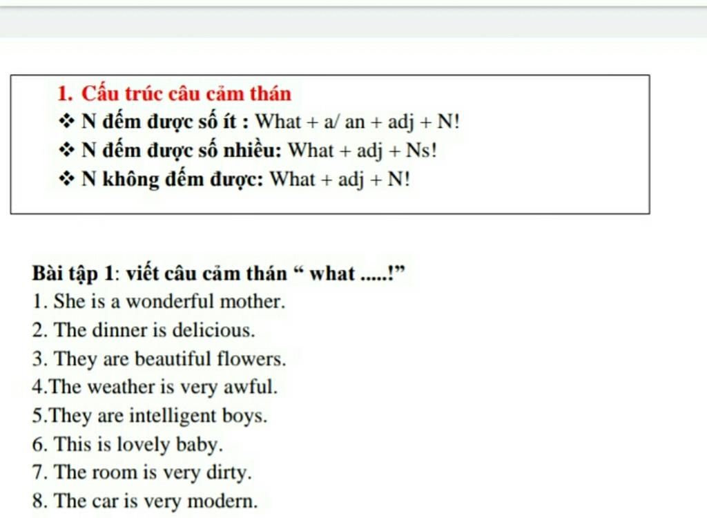 Ta có công thức câu cảm thán : What + a/an + adj + N !