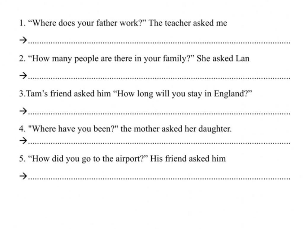 `-` S + asked/wondered + sb + Wh-questions + S + V (lùi thì)