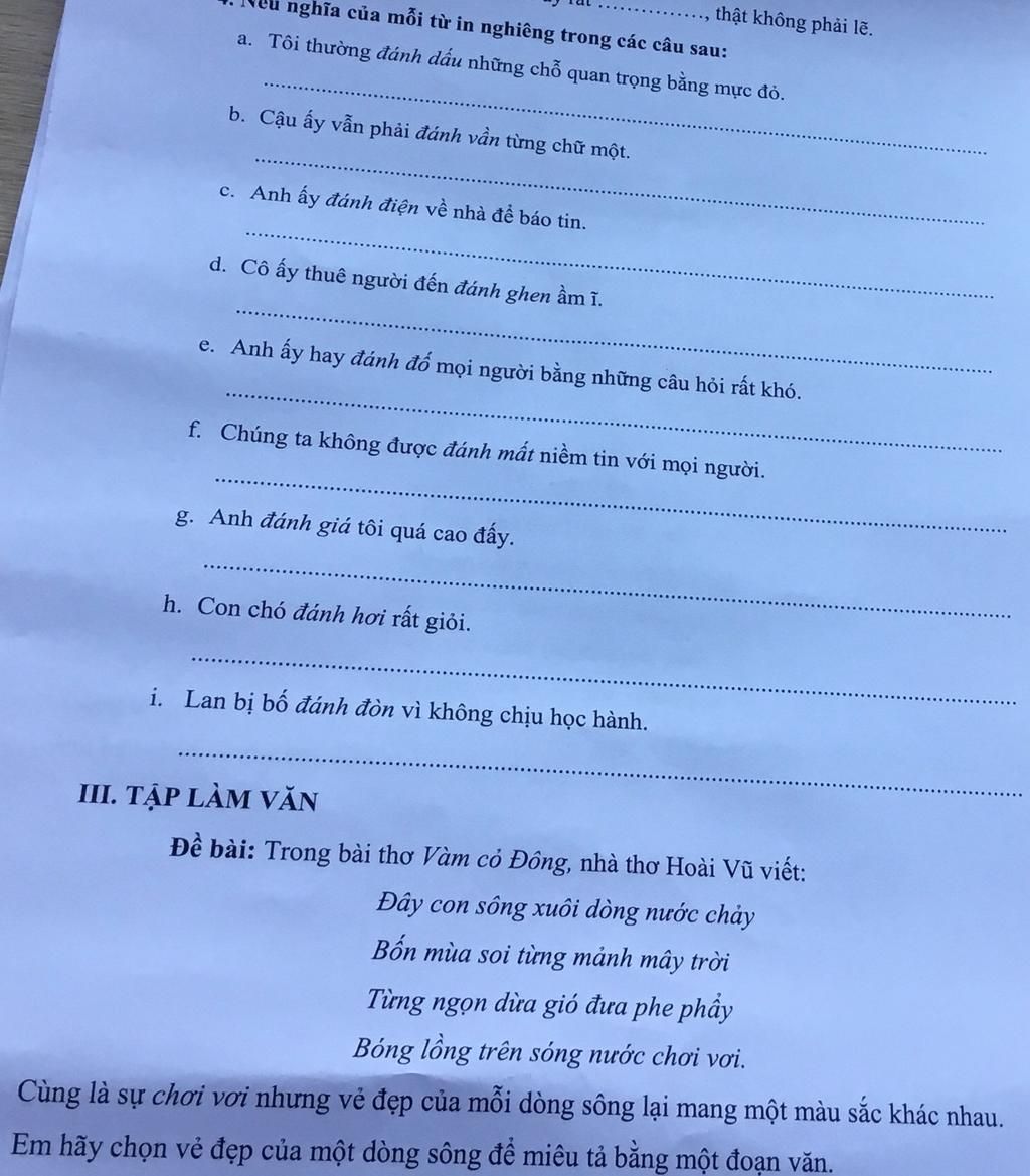 f)Đánh mất ở đây có nghĩa là làm người khác thất vọng em nhé !