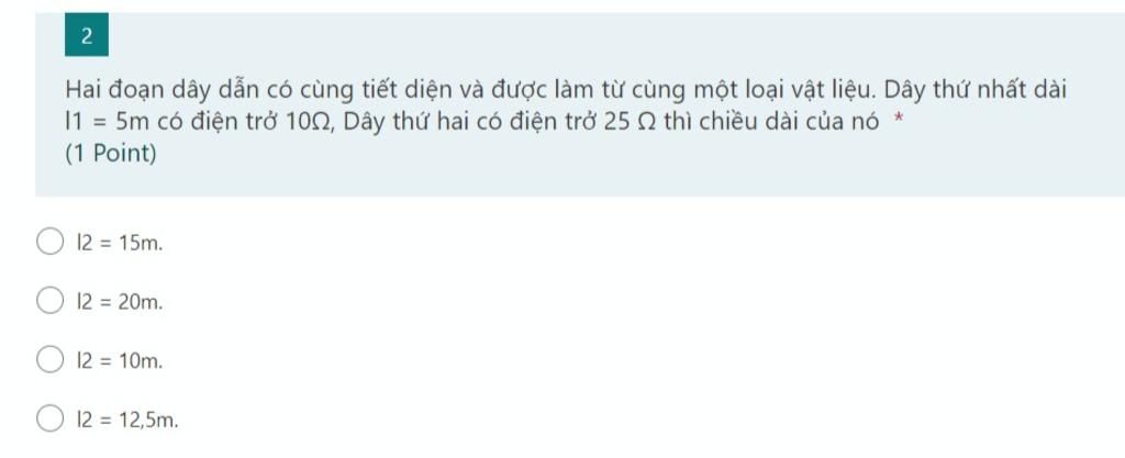 $\\$ Do hai dây được làm từ cùng một vật liệu và có cùng tiết diện, nên chiều dài của chúng tỉ lệ thuận với điện trở.