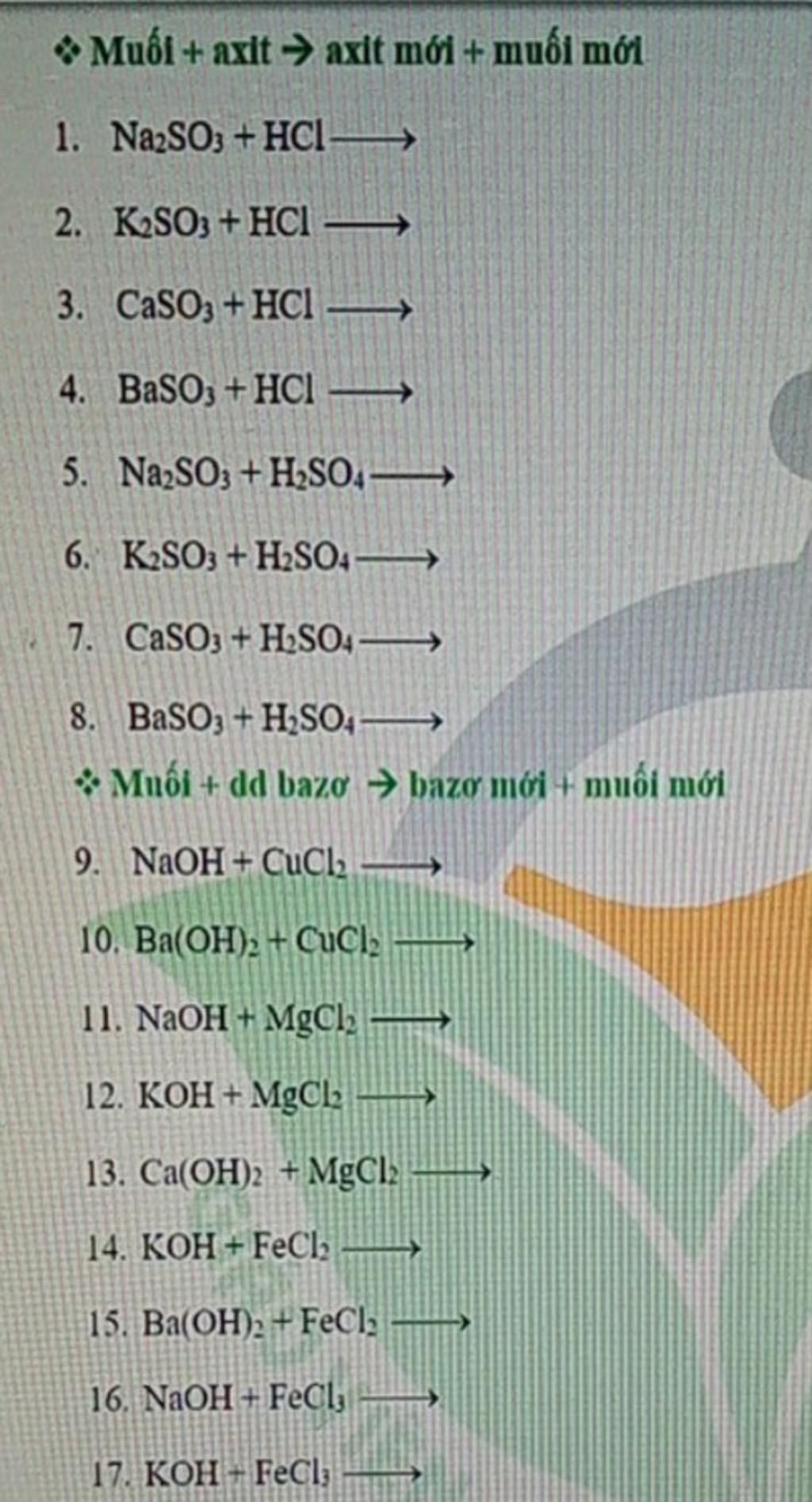 17. 2KOH + FeCl2→ 2KCl + Fe(OH)2↓