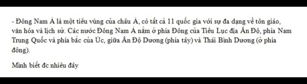 - Đông Nam Á là một tiểu vùng của châu Á, có tất cả 11 quốc gia với sự đa dạng về tôn giáo, văn hóa và lịch sử. Các nước Đông Nam Á nằm ở phía Đông của Tiểu Lục địa Ấn Độ, phía Nam Trung Quốc và phía bắc của Úc, giữa Ấn Độ Dương (phía tây) và Thái Bình Dương (ở phía đông).