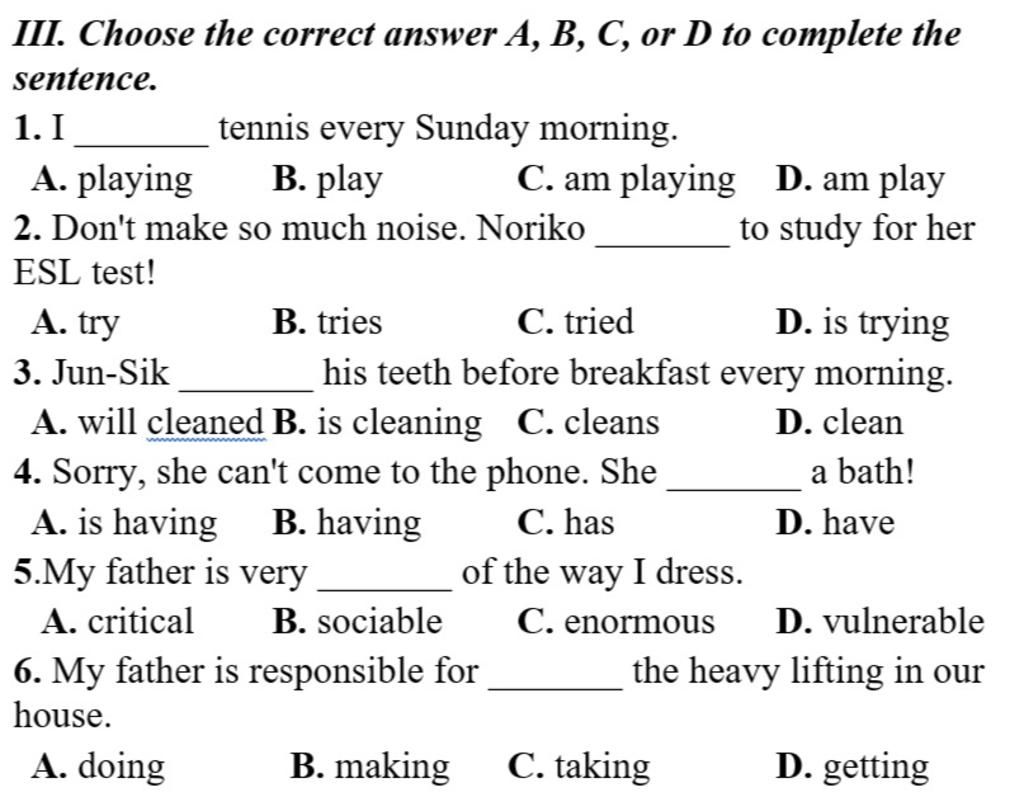 2. D (Don't make noise...- dấu hiện nhận biết của thì hiện tại tiếp diễn)