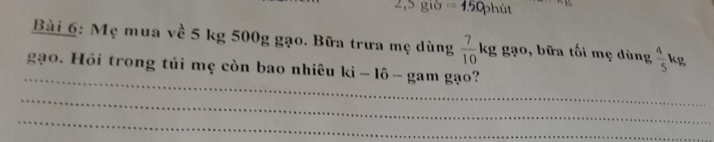 `5,5 - 0,8 - 0,7 = 4` ( kg gạo )