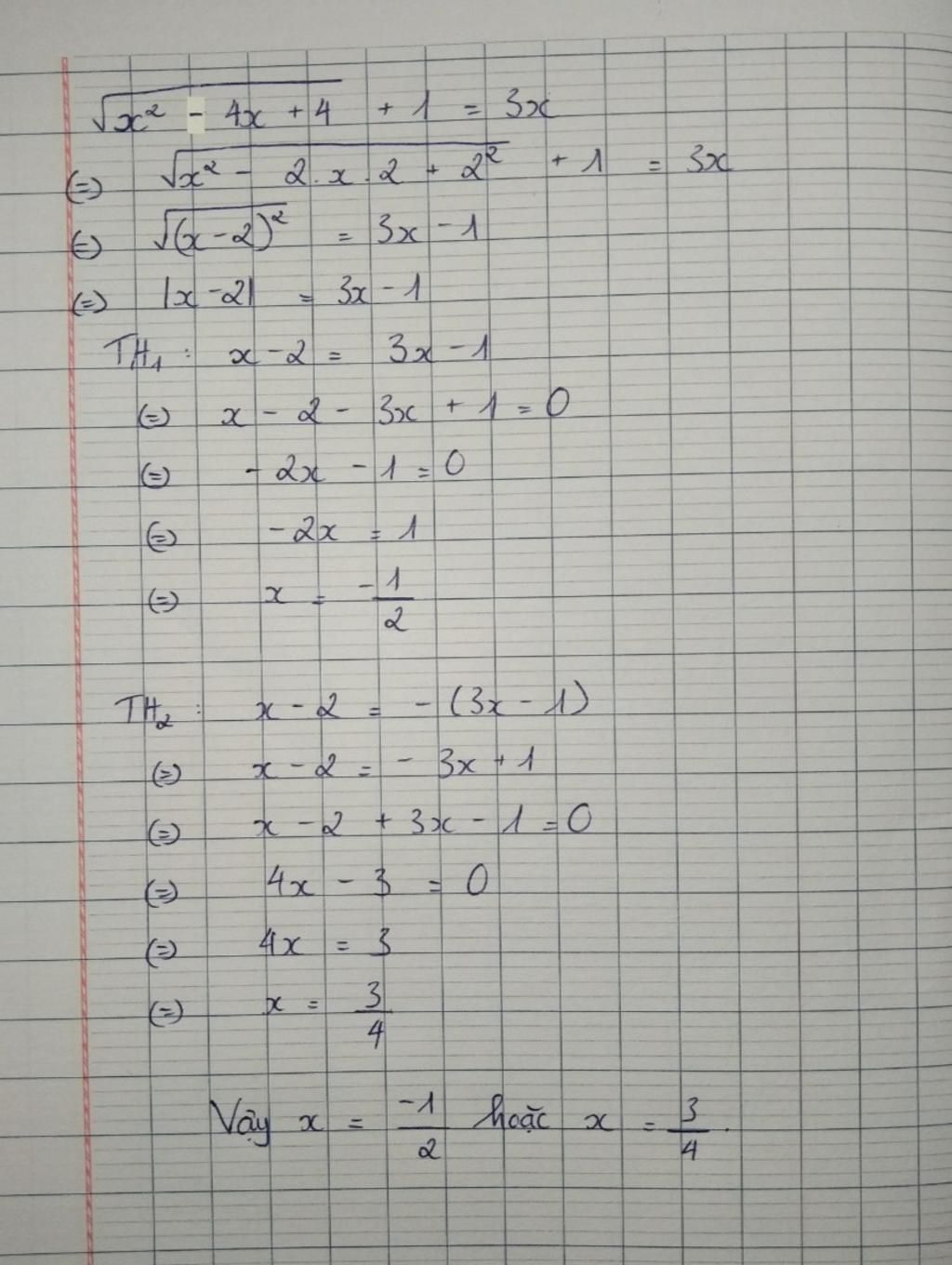 `⇔ \sqrt{x^2-4x+4}=3x-1`