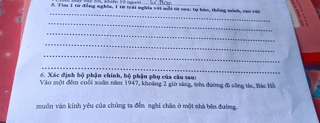 (Bài 6 phần mình mở ngoặc đóng ngoặc bạn không cần ghi đâu ạ, chỉ cần ghi Bộ phận chính với Bộ phận phụ thôi ạ)
