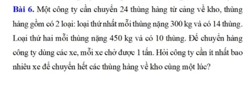 Bài 6. Một công ty cần chuyển 24 thùng hàng từ cảng về kho, thùng