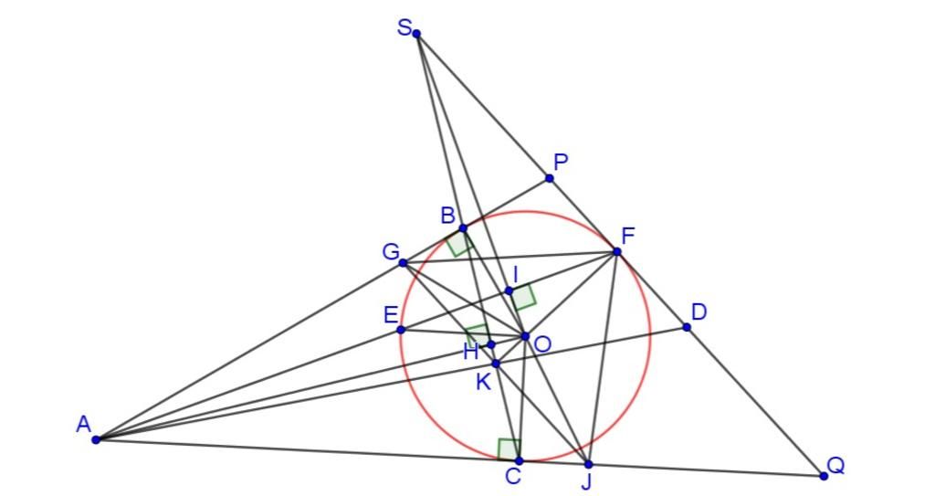 $\Rightarrow \widehat{BOG}=\widehat{BKG}$ và $\widehat{COJ}=\widehat{CKJ}$