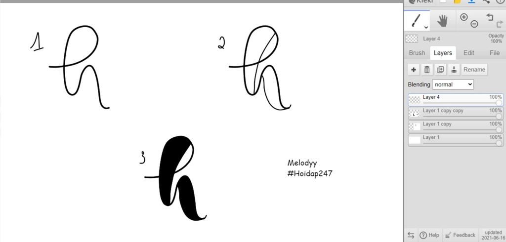 B2 : Vẽ và đổ màu chứ bạn muốn calli ra ( mik viết chữ "h" ). - Pic 1