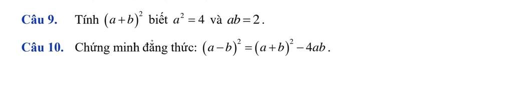 Vậy với `a^2=4` và `ab=2` thì `(a+b)^2=9`