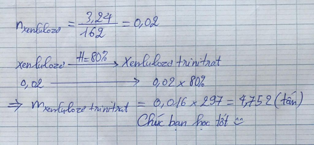 Tỉ lệ khối lượng: $162$ tấn xenlulozơ tạo ra $297$ tấn xenlulozơ trinitrat