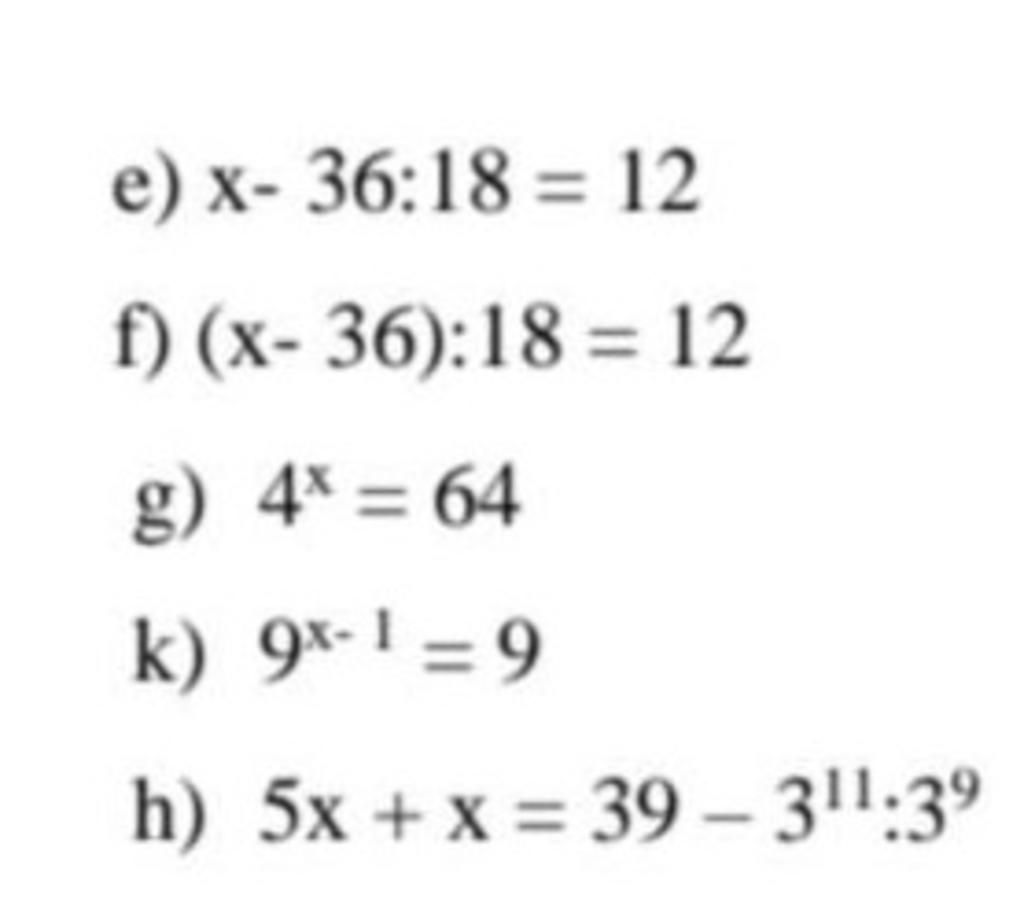 `h) 5x + x = 39 - 3^{11} : 3^9`