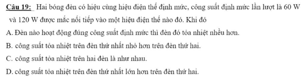 Vậy khi mắc hai đèn nối tiếp với nhau thì đèn $60W$ có công suất lớn hơn.