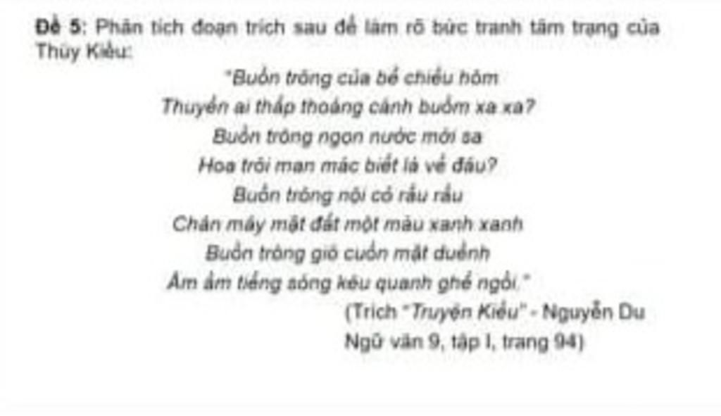Độc đáo hơn, khi những bức tranh tâm trạng được cụ Nguyễn Du sắp xếp theo trình tự tăng tiến. Từ cảm giác hoang mang trước của biển, đến suy nghĩ về tương lai vô định, nổi trôi của kiếp đời con gái. Sau đó là sự tuyệt vọng trước nghịch cảnh bế tắc, tối tăm. Cuối cùng, nàng rơi vào trạng thái hoang tưởng, tột cùng đau đớn và sợ hãi. Bằng nghệ thuật ẩn dụ, hệ thống câu hỏi tu từ, các từ láy “thấp thoáng”, “xa xa”, “man mác”,“rầu rầu”,”xanh xanh”,”ầm ầm”… góp phần làm nổi bật nỗi buồn nhiều bề trong tâm trạng Kiều. Tác giả lấy ngoại cảnh để bộc lộ tâm cảnh.