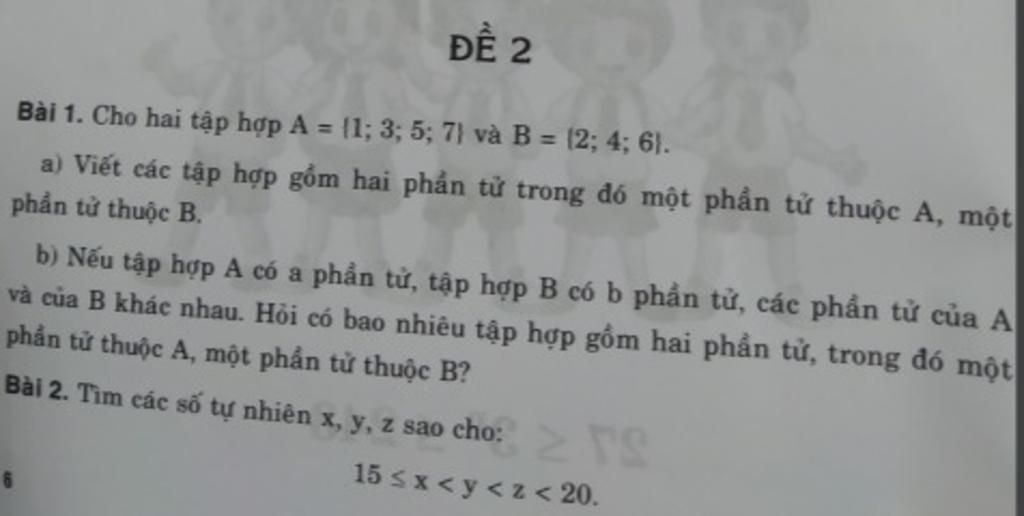 Bài 1. Cho hai tập hợp A = (1; 3; 5; 7) và B = (2; 4; 6).