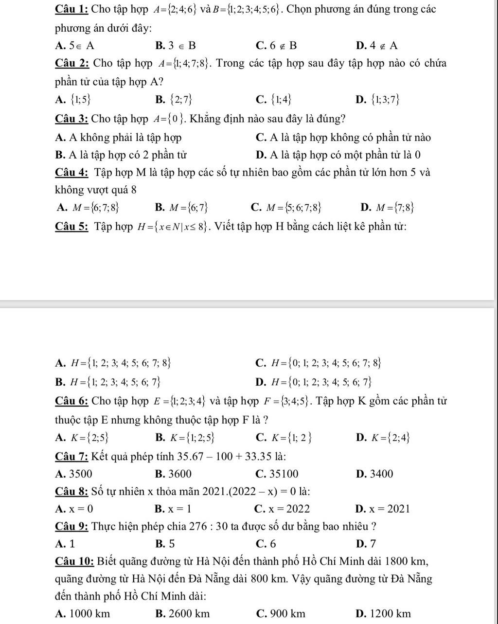 `→` Tập hợp `A` chỉ có mỗi số `0` thì tập hợp này vẫn được coi là một tập hợp có `1` phần tử