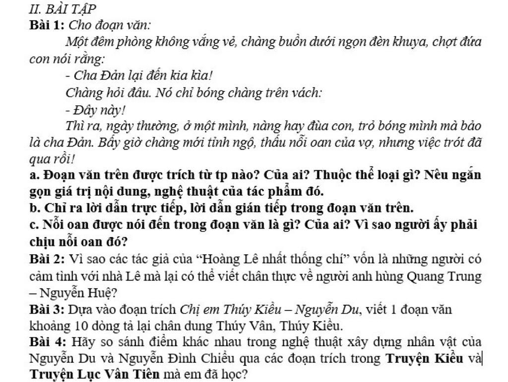 Bài 1: Cho đoạn văn: