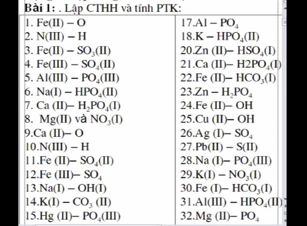 Bài 1: . Lập CTHH và tính PTK:
