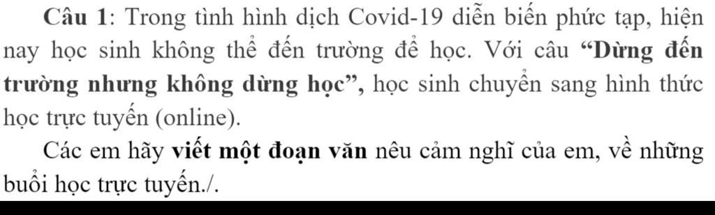 Những ngày nghỉ nhằm giãn cách xã hội trong đợt dịch bệnh Covid19 vừa qua đã đem đến cho em những kỉ niệm, ấn tượng sâu sắc. Đó là việc em được tiếp xúc với 1 cách học mới mẻ, học trực tuyến.Buổi học trực tuyến đem lại cho em những cảm giác thật hàp hứng và mới mẻ. Lớp học giờ đây đã hoàn toàn khác, không phải bảng xanh, bàn ghế kê san sát nhau như trước đây. Thay vào đó là không gian quanh nhà, với bảng chính là chiếc màn hình máy tính. Lớp học của em vẫn bắt đầu như thường lệ, các tiết học vẫn được thầy cô giáo sắp xếp thật đầy đủ và cố định cho học sinh.Giờ học trực tuyến của em bắt đầu thông qua phần mềm vô cùng hữu ích, đó chính là zoom. Vào gần giờ học, tất cả mọi thứ được chuẩn bị sẵn sàng như việc mở máy tính lên, chuẩn bị sách vở,... Cô giáo là người đầu tiên vào lớp rồi sẽ thêm các bạn học sinh vào. Giờ học diễn ra vẫn như bình thường, đảm bảo chất lượng như các giờ học trên lớp tại trường. Giaó viên vẫn hết sức quan tâm đến học sinh. Không khí lớp học thật náo nhiệt, sôi nổi. Các bạn trong lớp vẫn hăng hái tham gia phát biểu, xây dựng bài.Kỉ niệm về những buổi học trực tuyến chẳng thể nào phai mờ trong tâm trí em.