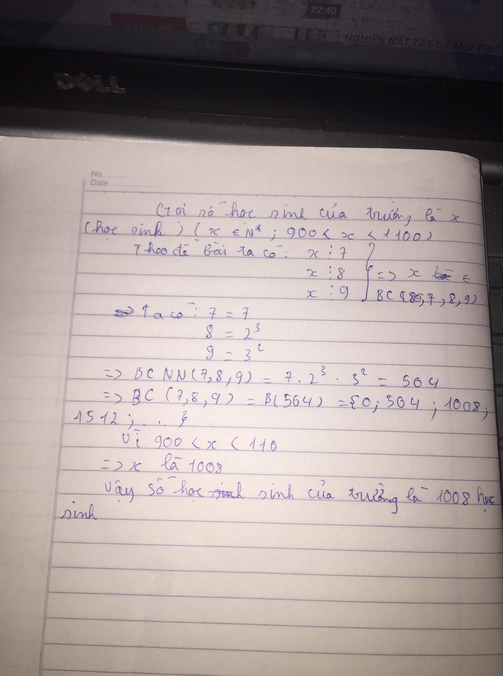 Vậy trường đó có `1008` học sinh