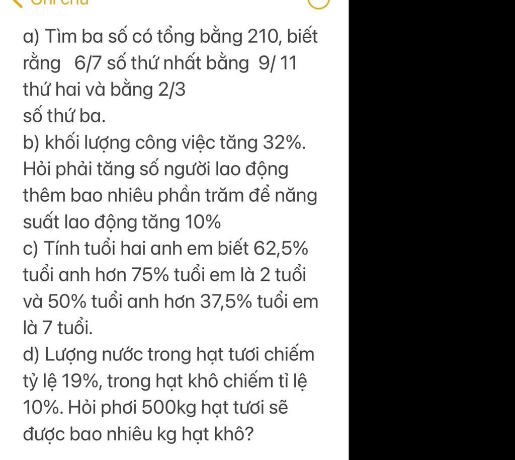 a) Tìm ba số có tổng bằng 210, biết