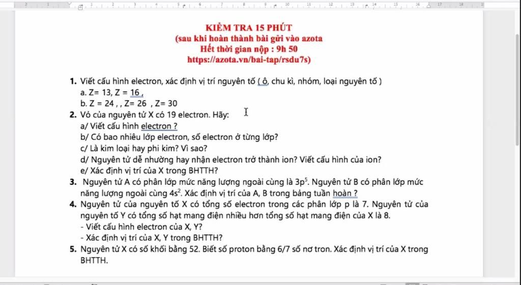 1. Viết cấu hình electron, xác định vị trí nguyên tố (ô, chu kì, nhóm, loại nguyên tố )