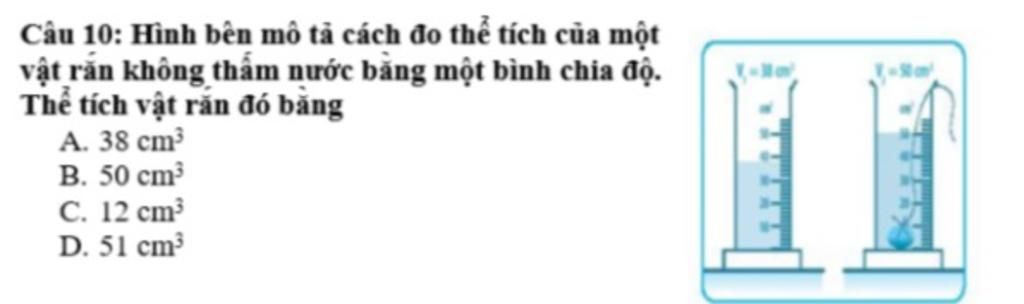 Thể tích vận rắn `=` tổng thể tích vật rắn và nước `-` nước