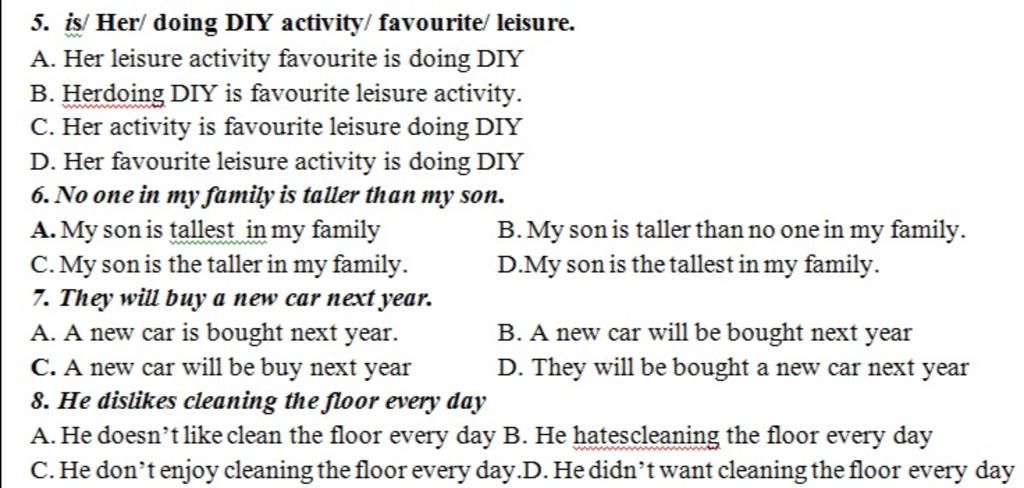 5, Cấu trúc ở câu D là cấu trúc đúng nhất.