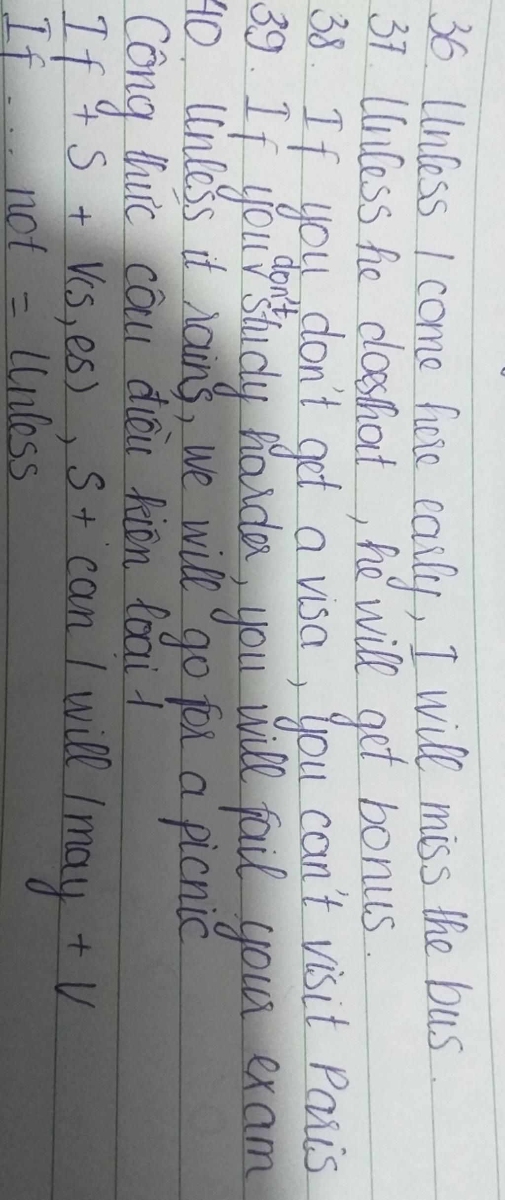 36 Unless I come here early, I will miss the bus.