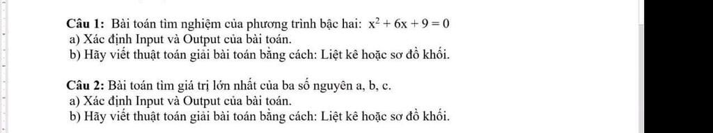 b) Hãy viết thuật toán giải bài toán bằng cách: Liệt kê hoặc sơ đồ khối.