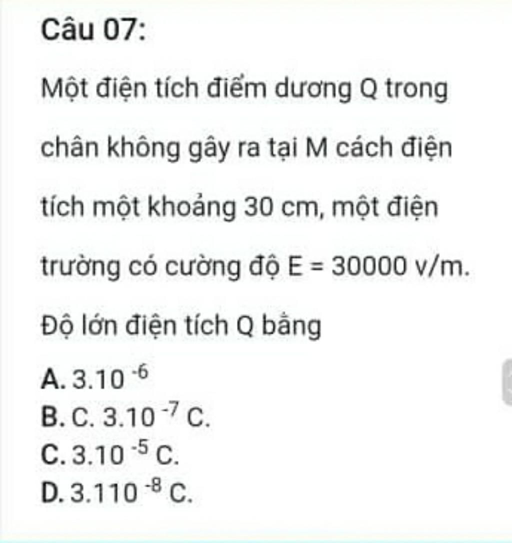 Giải thích các bước giải: áp dụng ct cường độ điện trường: