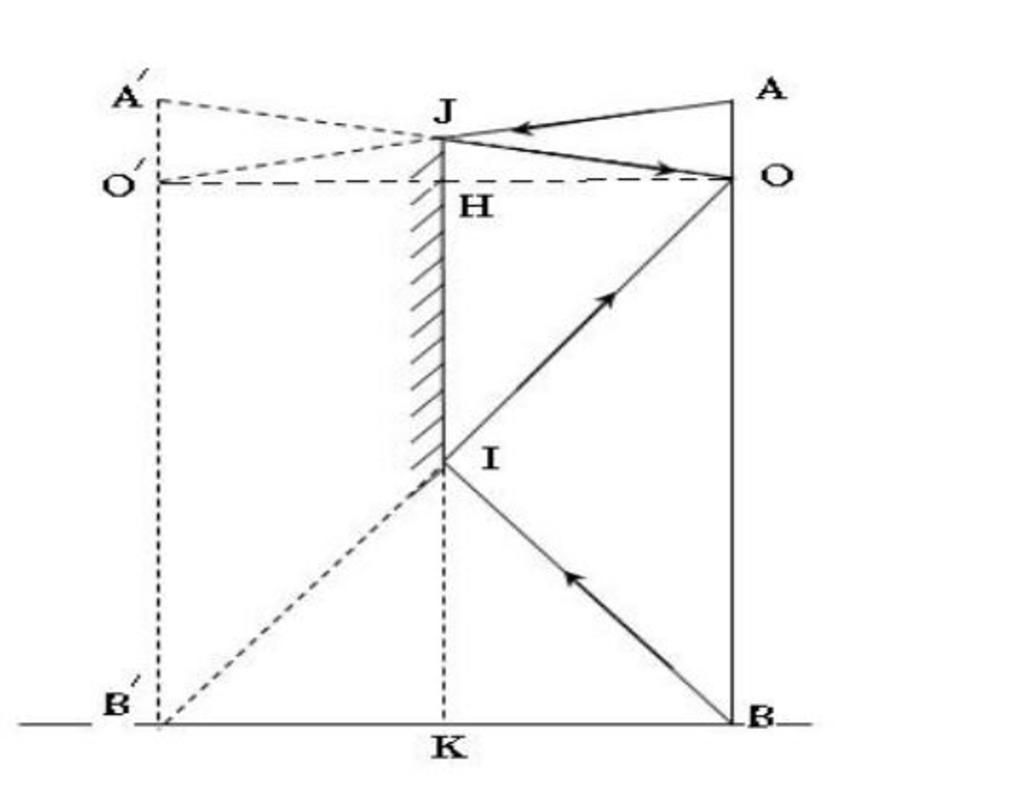 \(IJ = AB - \dfrac{{A'O'}}{2} - \dfrac{{OB}}{2} = 170 - 5 - 80 = 85cm\)