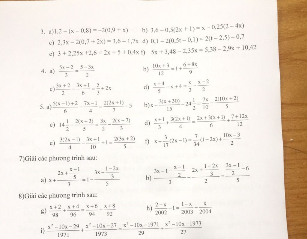 c) 2,3x – 2(0,7+ 2x) = 3,6 – 1,7x d) 0,1 – 2(0,5t – 0,1) = 2(t – 2,5) – 0,7