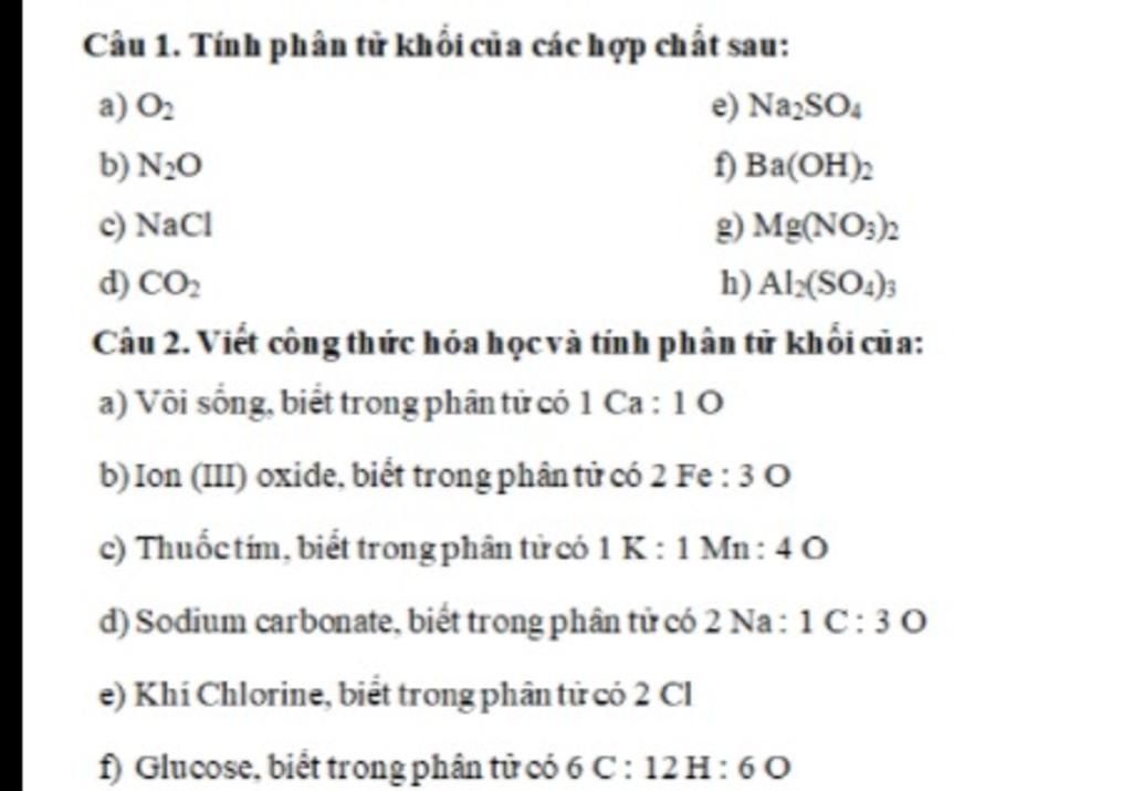 c)KMnO4=39+55+16x3=142 đvC f)C6H12O6=12x6+1x12+16x6=180đvC