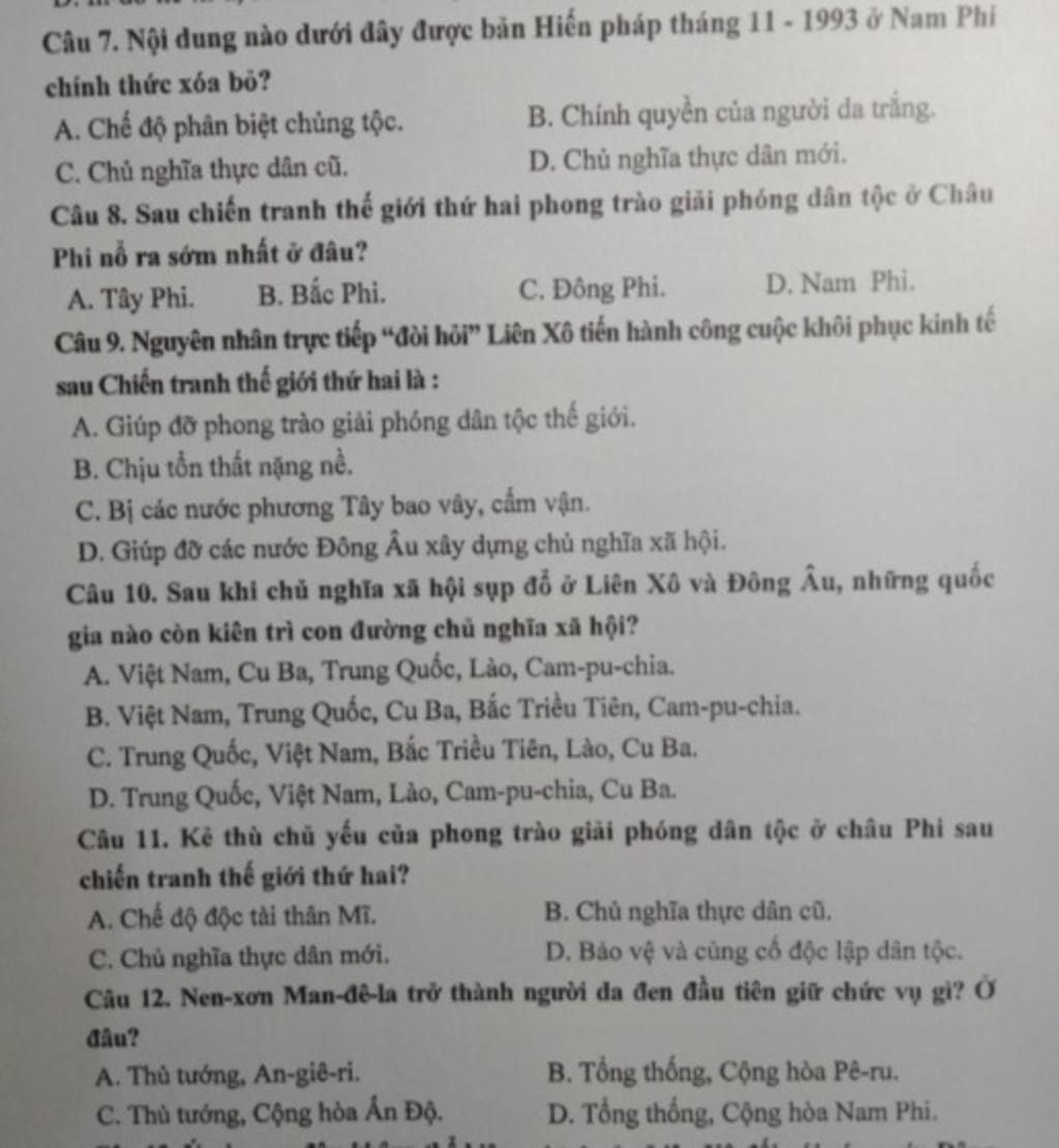 ⇒ Đó là các nước : Trung Quốc, Việt Nam, Bắc Triều Tiên, Lào, Cu Ba.