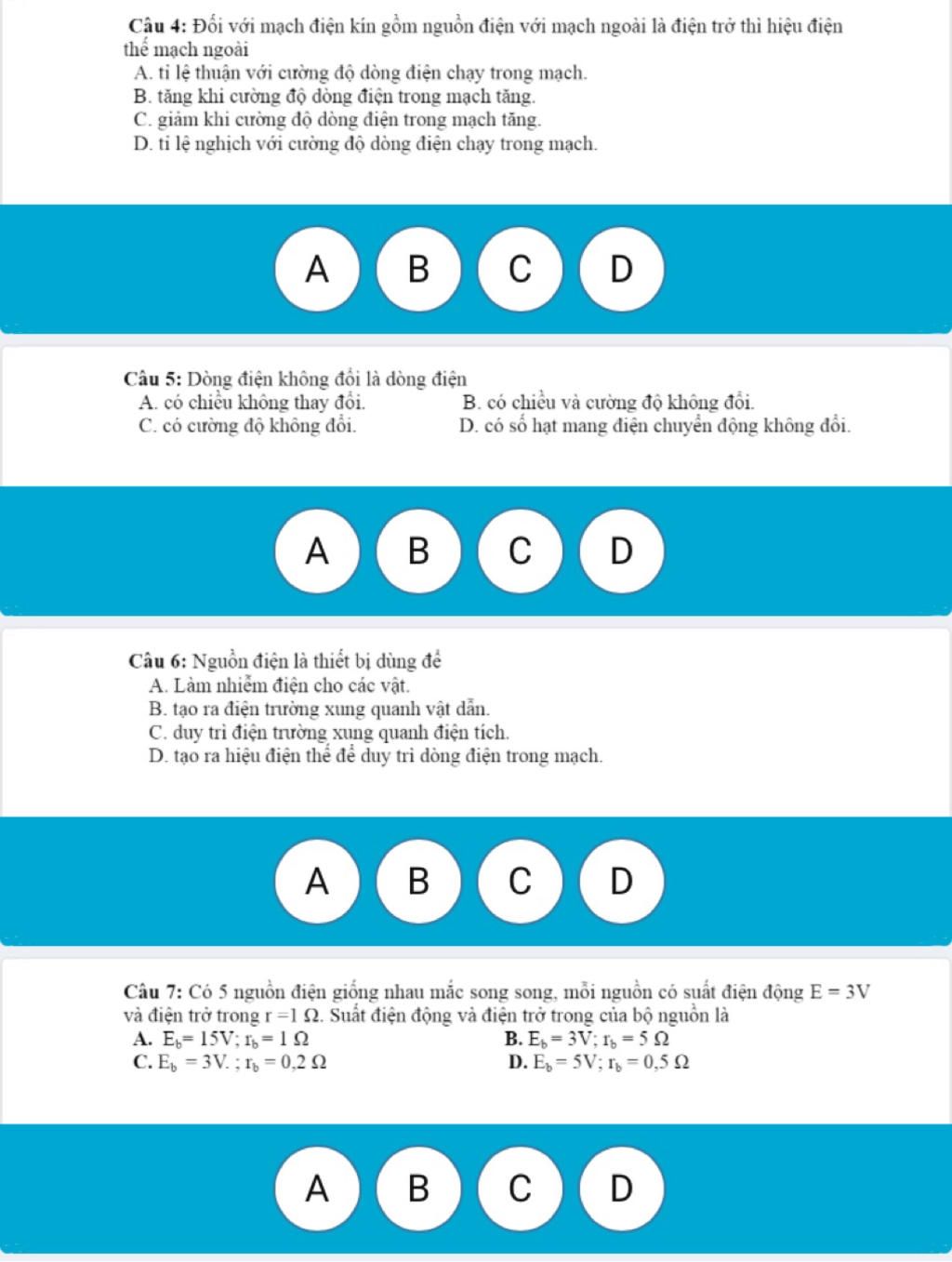 Câu 4: Đối với mạch điện kín gồm nguồn điện với mạch ngoài là điện trở thi hiệu điện