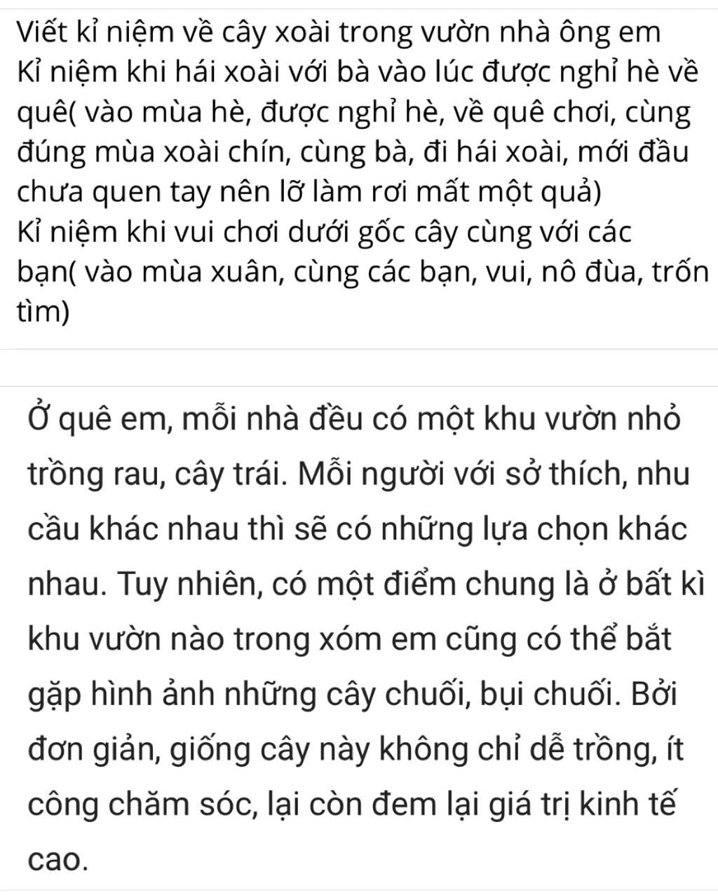 Viết kỉ niệm về cây xoài trong vườn nhà ông em