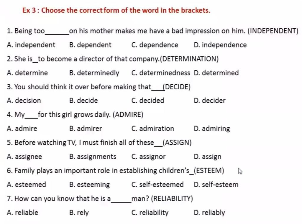 Ex 3: Choose the correct form of the word in the brackets.
