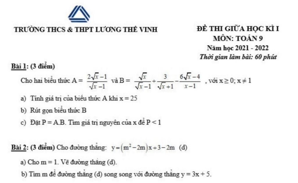 TRƯỜNG THCS & THPT LƯƠNG THỂ VINH