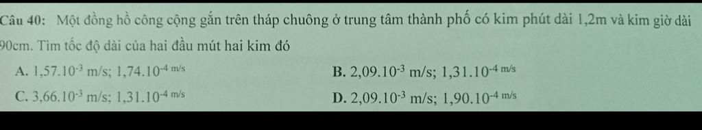 $v=ωR=\dfrac{π}{21600}.0,9≈1,31×10^{-4}(m/s)$