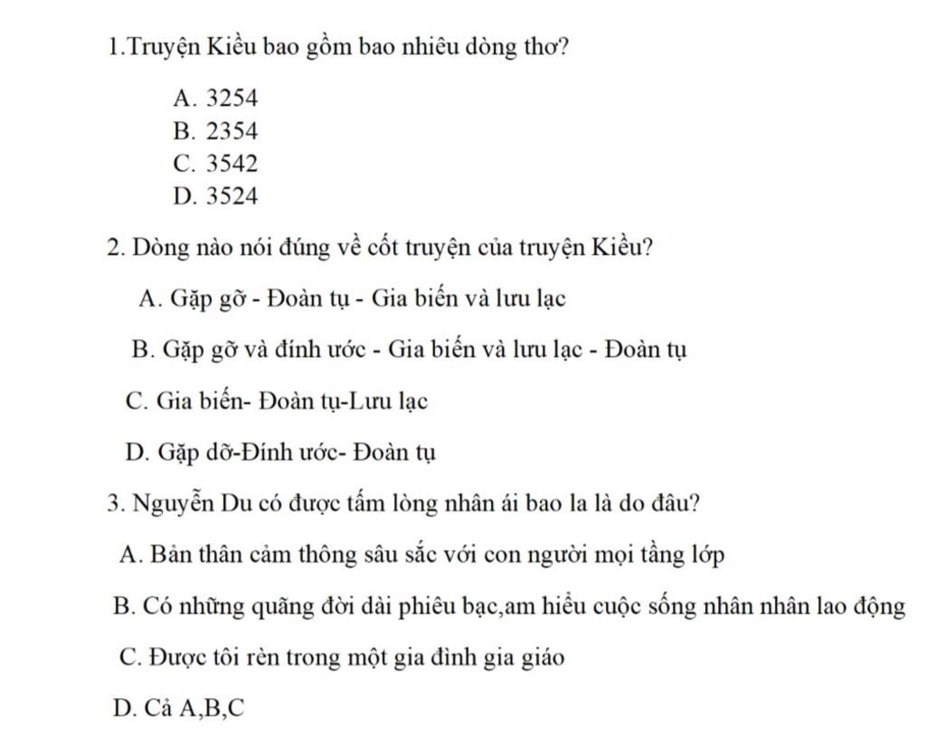 1.Truyện Kiều bao gồm bao nhiêu dòng thơ?