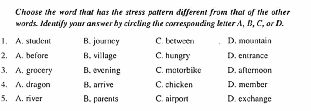 -> Ba từ còn lại nhấn trọng âm thứ 1