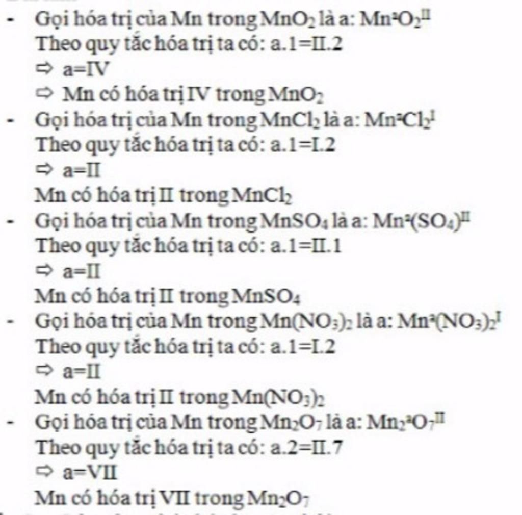 Vậy hóa trị của `Mn` trong `Mn_2O_7` là `VII`
