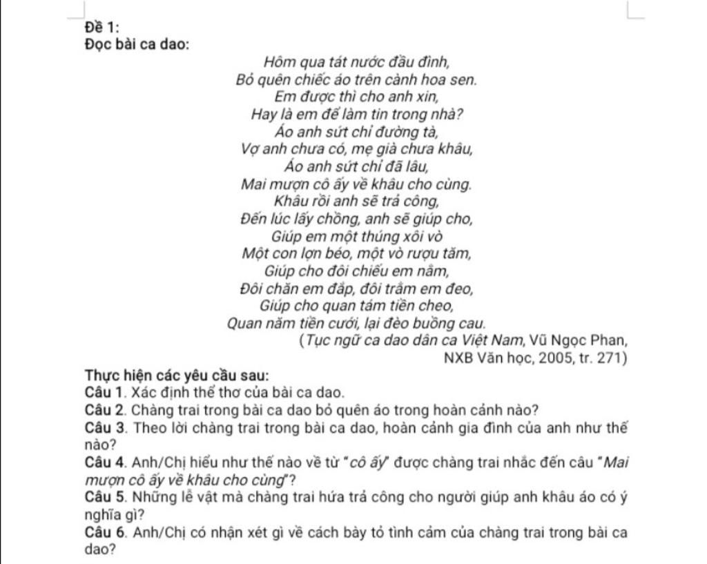 3, Hoàn cảnh gia đình: áo sứt chỉ đã lâu, vợ chưa có, mẹ già chưa khâu