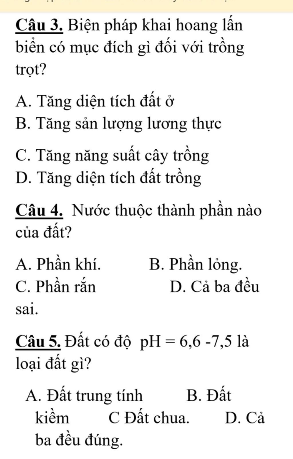 khai hoang lấn biển là giúp tăng diện tích đất trồng, của phần mục đích