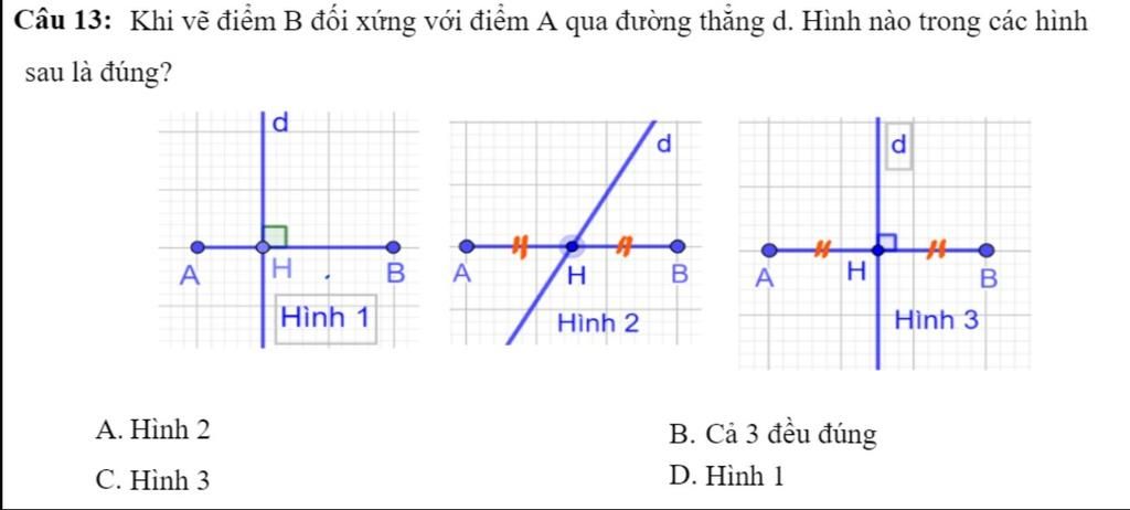 `-` Hai điểm gọi là đối xứng với nhau qua đường thẳng d nếu d là đường trung trực của đoạn thẳng nối hai điểm đó.