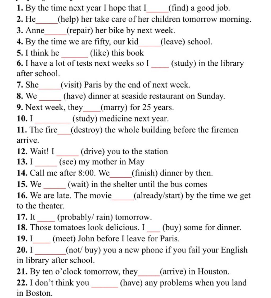 1. By the time next year I hope that I