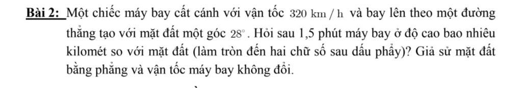 $\text{Vậy sau 1,5 phút bay thì máy bay ở độ cao khoảng 3,76 km so với mặt đất}$