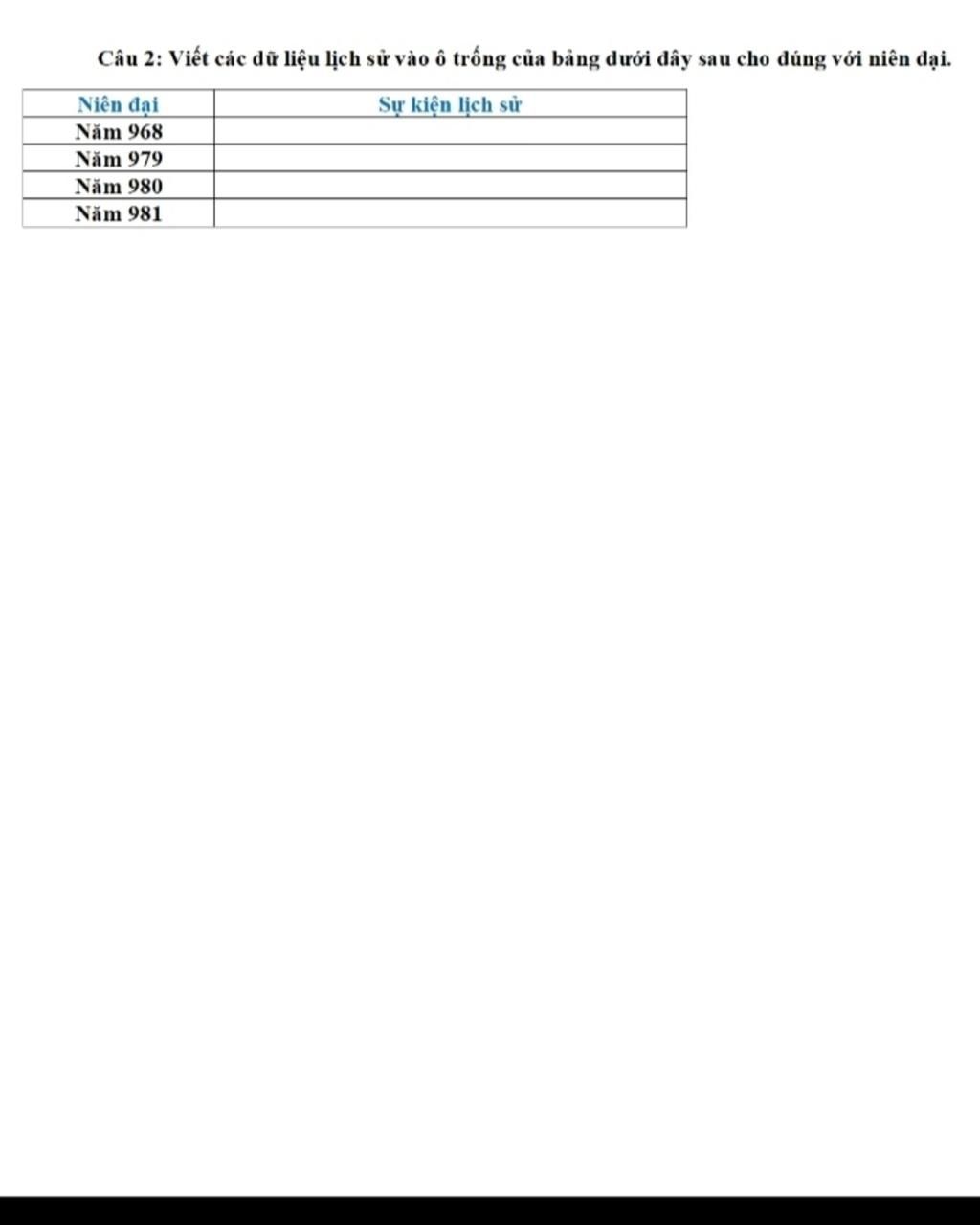 -Năm 980: Lê Hoàn lên ngôi vua, thành lập nhà tiền Lê.